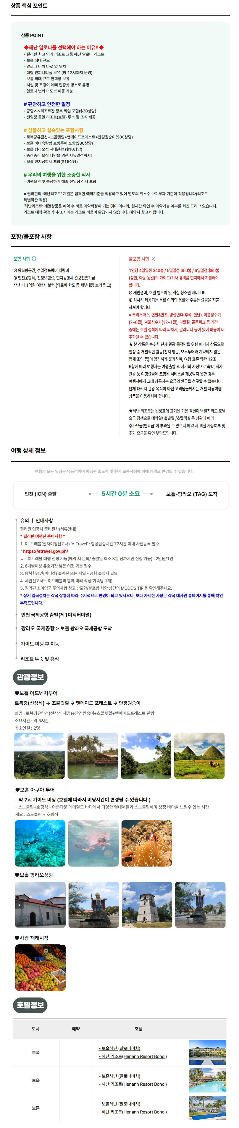 [보홀 / 헤난 알로나 디럭스룸] 데이투어+로복강+호핑 3박5일 #데이투어#호핑투