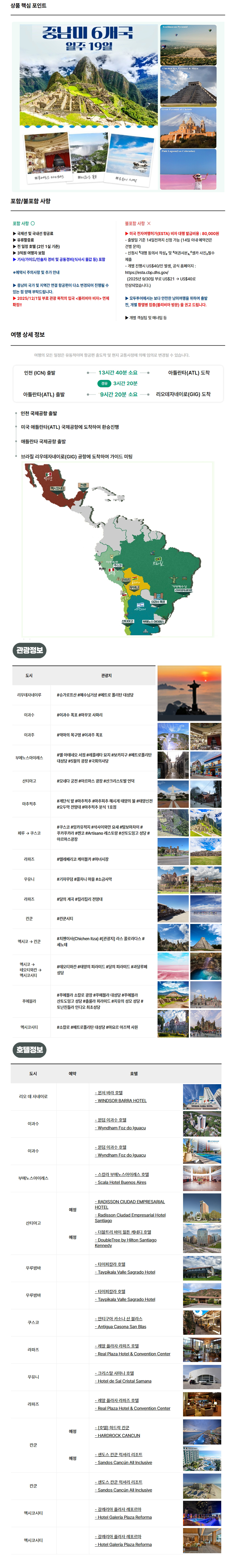 [100%출발보장][모두단독] 중남미 6개국 일주 19일 마추픽추/이과수폭포/우유니소금사막/3대 피라미드